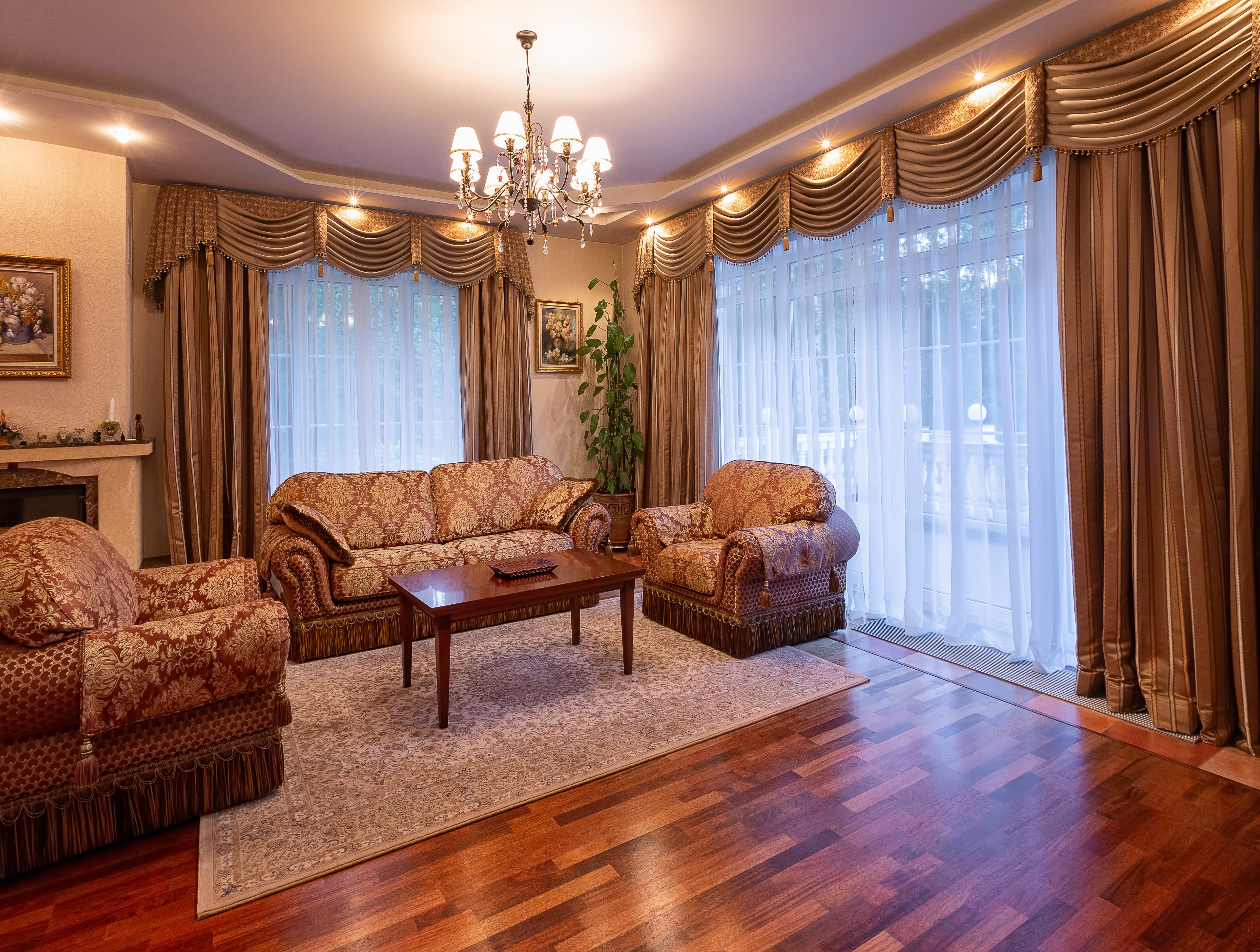 Сюда входят: производство и монтаж карнизов; дизайн, пошив и навеска штор.